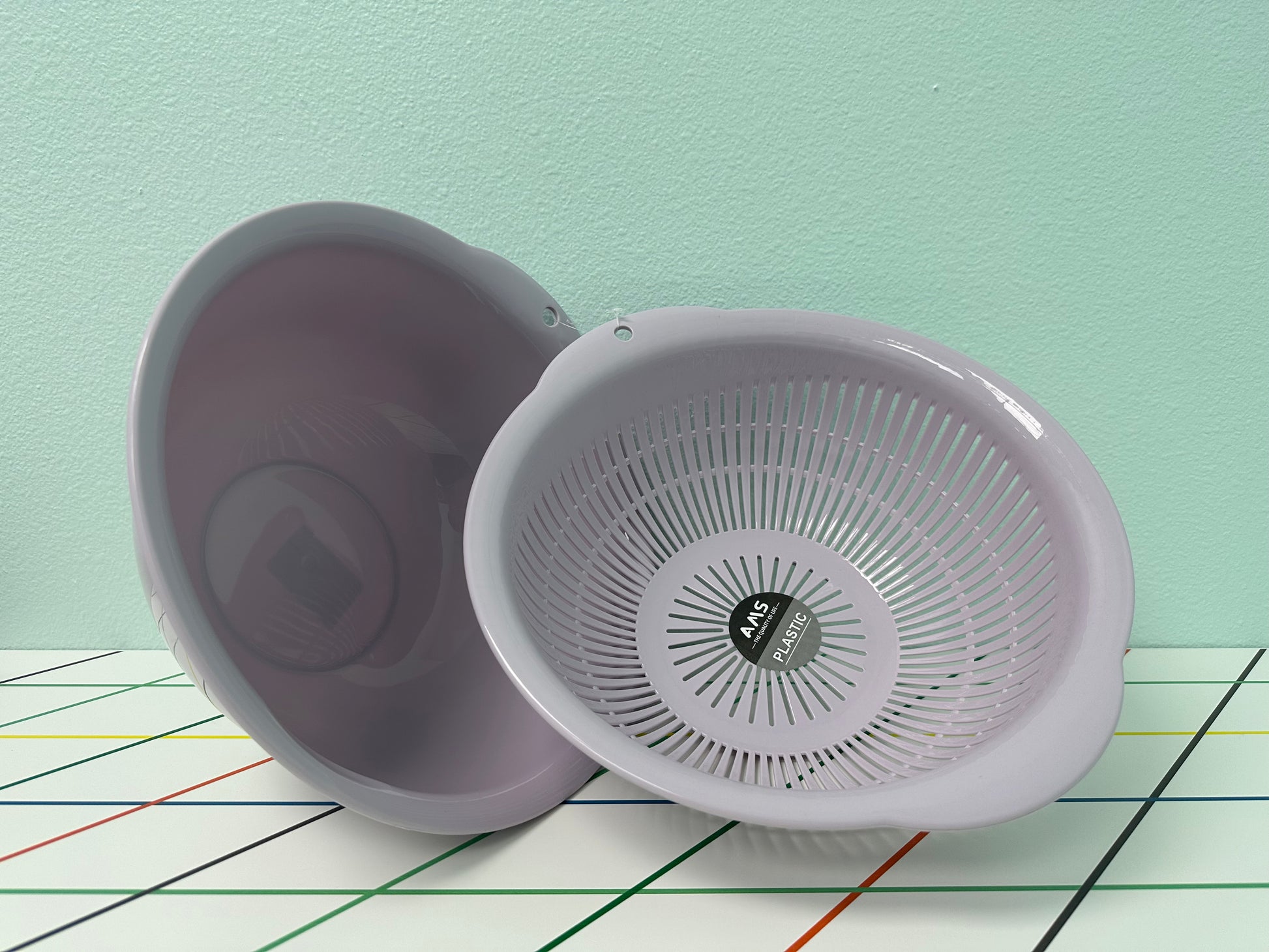 The Double Basket Vegetable Strainer features two nested baskets designed for efficient washing, draining, and rinsing of vegetables. Its sturdy construction ensures stability during use, while the dual compartments allow you to separate different produce or soak and drain simultaneously. Ideal for kitchen professionals and home cooks alike, this strainer streamlines prep work by combining functionality with practical design for quicker, cleaner results.